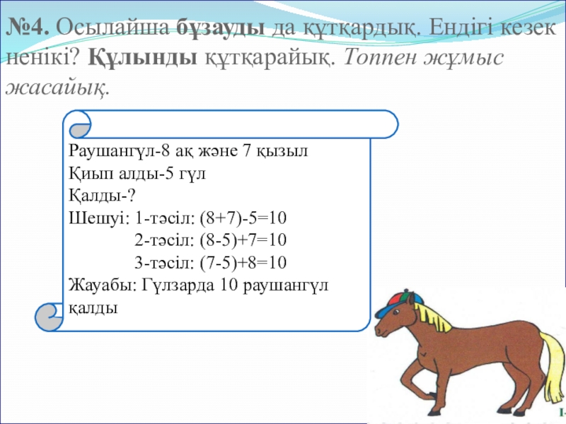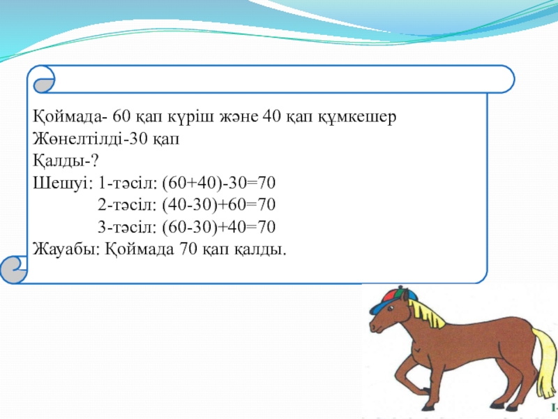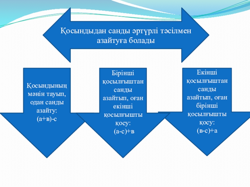 Бірінші қосылғыштан санды азайтып, оған екінші қосылғышты қосу: