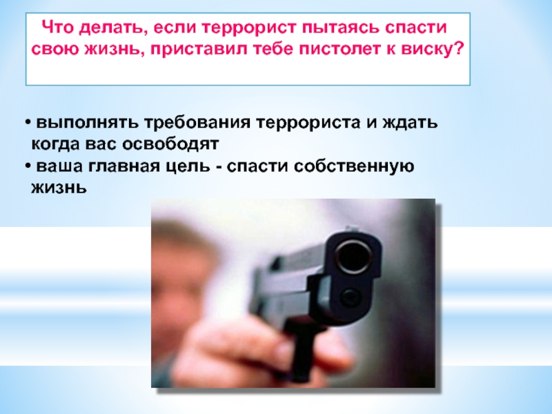 выполнять требования террориста и ждать когда вас освободят