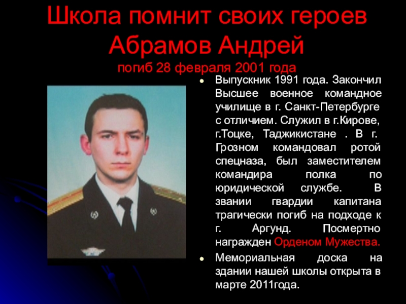 погиб 28 февраля 2001 года