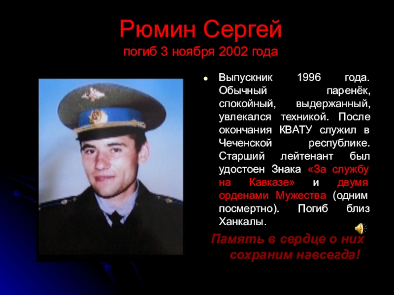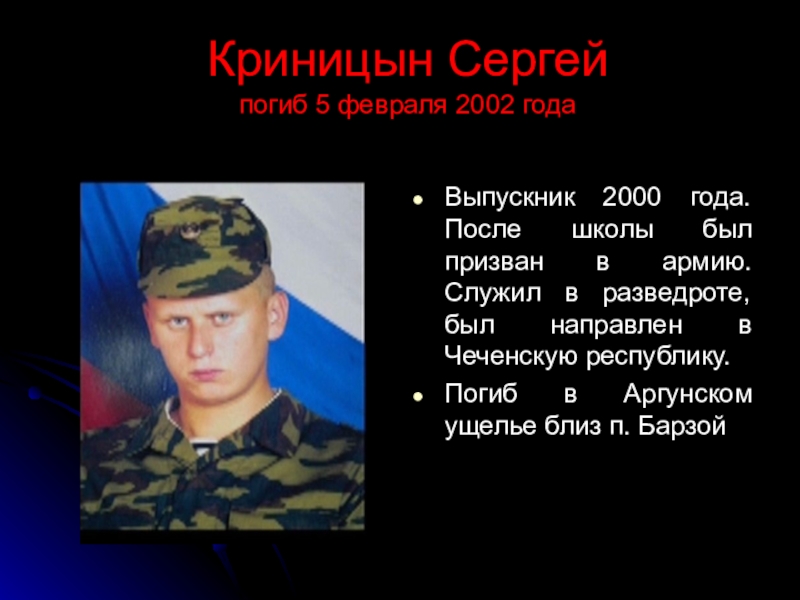 Погиб в Аргунском ущелье близ п. Барзой