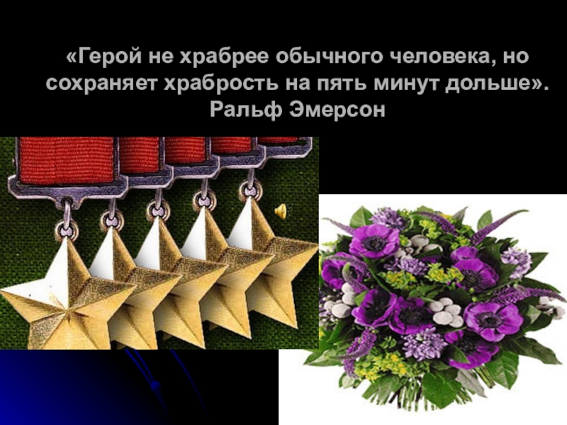 Слайд 27«Герой не храбрее обычного человека, но сохраняет храбрость на пять минут