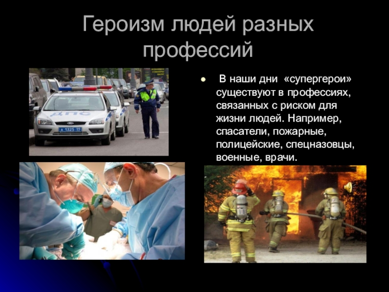 Слайд 9Героизм людей разных профессий