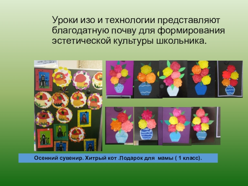 Слайд 14Уроки изо и технологии представляют благодатную почву для формирования эстетической культуры