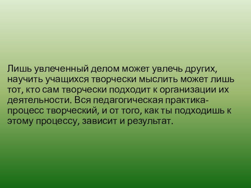 Слайд 13Лишь увлеченный делом может увлечь других, научить учащихся творчески мыслить может