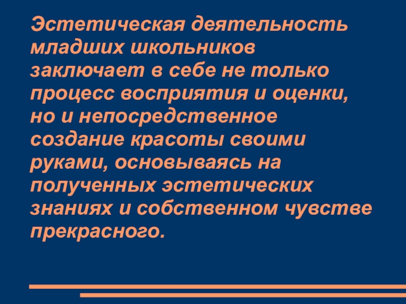 Эстетическая деятельность младших школьников заключает в себе не только процесс восприятия и оценки, но и непосредственное создание