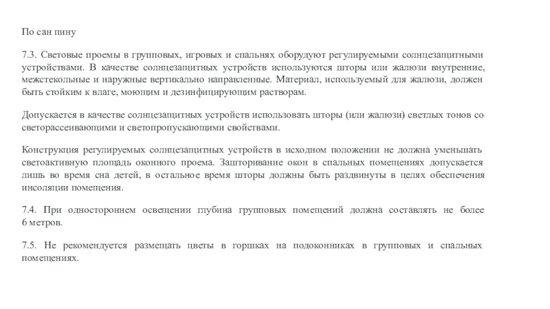 7.3. Световые проемы в групповых, игровых и спальнях оборудуют