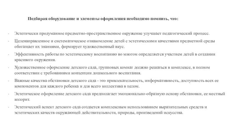 Эстетически продуманное предметно-пространственное окружение улучшает педагогический процесс.