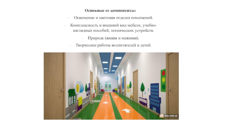 Эстетическое оформление детского сада предполагает эмоционально-образную основу обстановки, ее местный колорит.