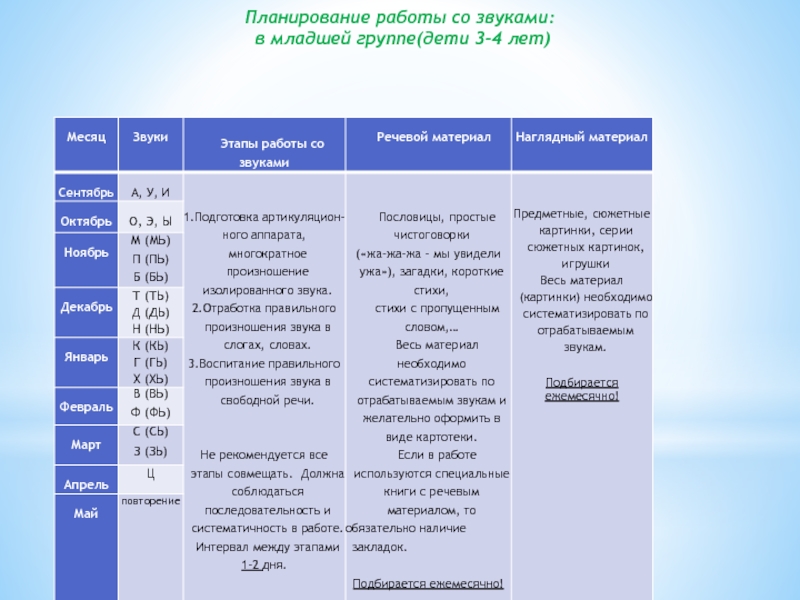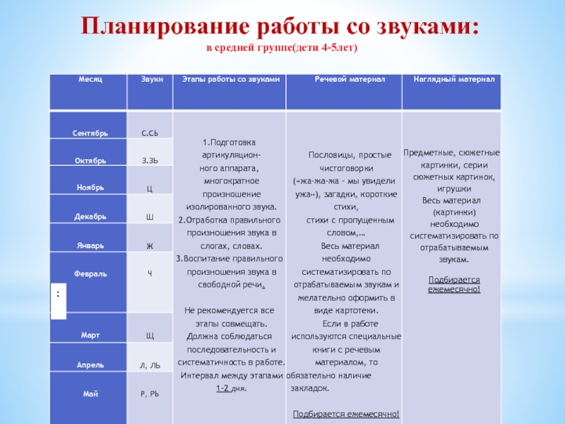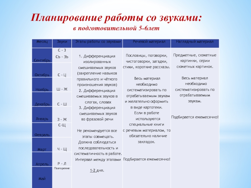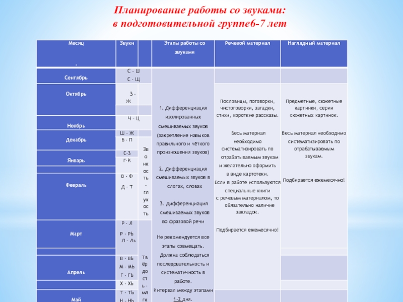 оказание помощи педагогам ДОУ в планировании работы по развитию звуковой