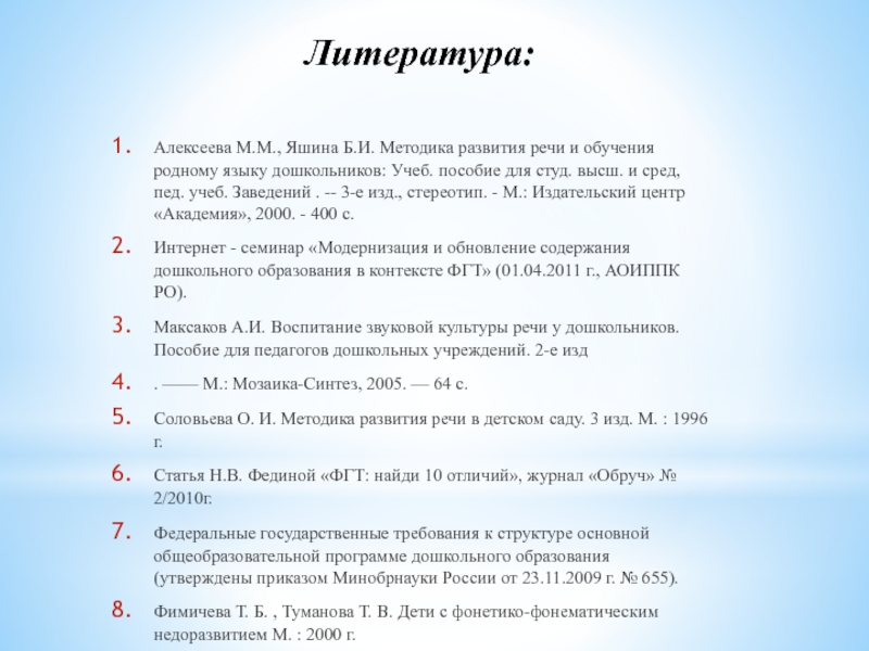 Фимичева Т. Б. , Туманова Т. В. Дети с фонетико-фонематическим недоразвитием М. : 2000 г.