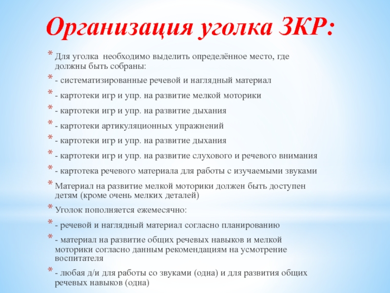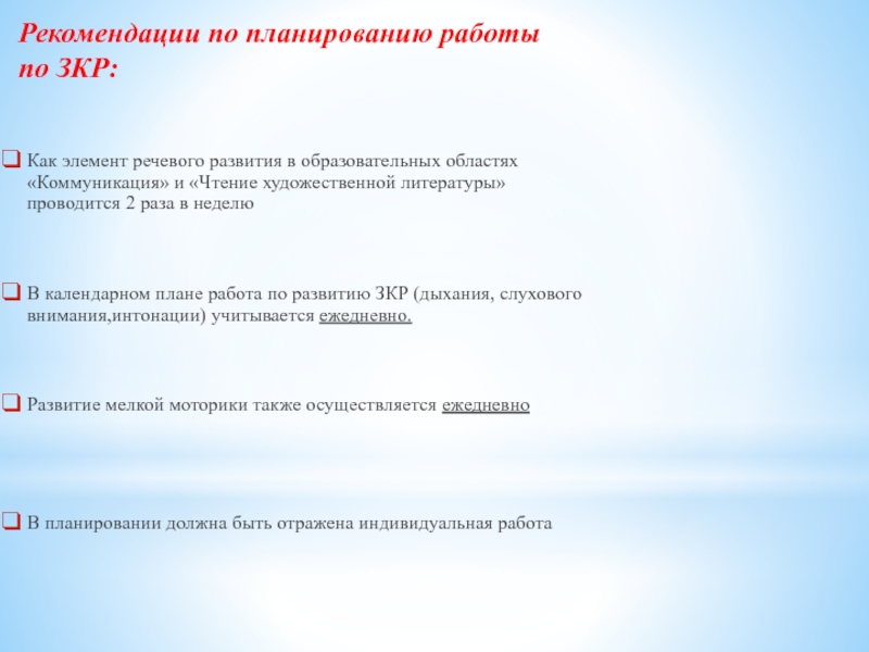 Слайд 7Рекомендации по планированию работы по ЗКР: