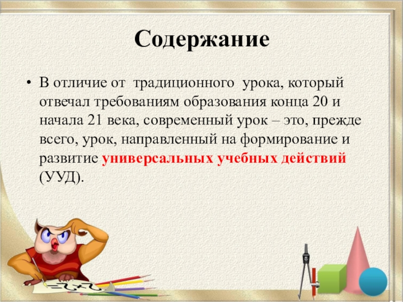 и начала 21 века, современный урок – это, прежде всего, урок, направленный на формирование и развитие универсальных учебных действий (УУД).