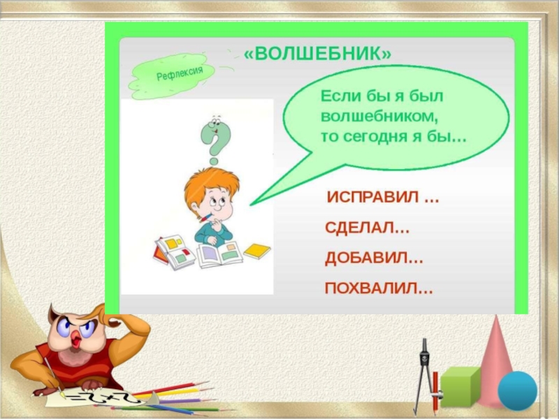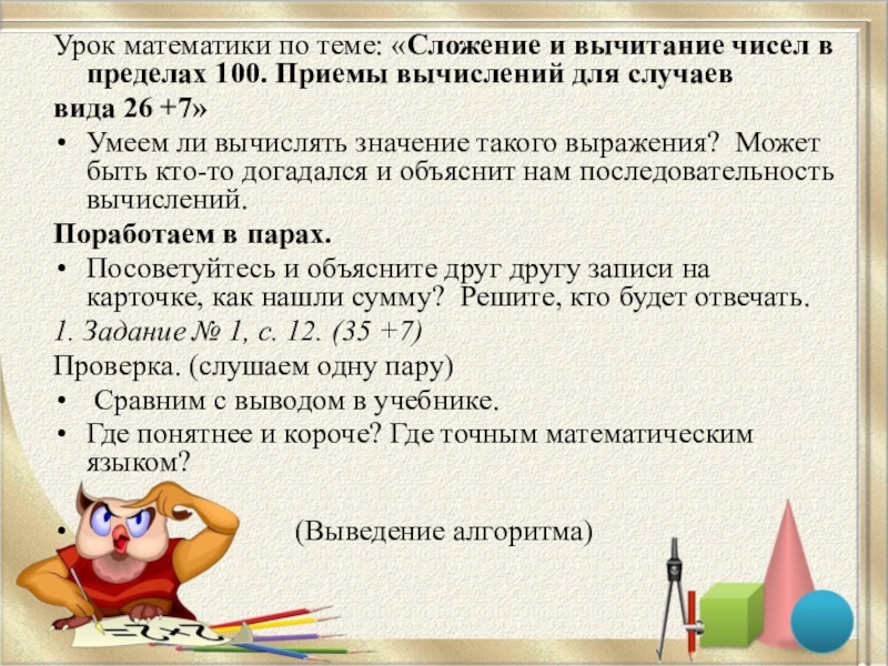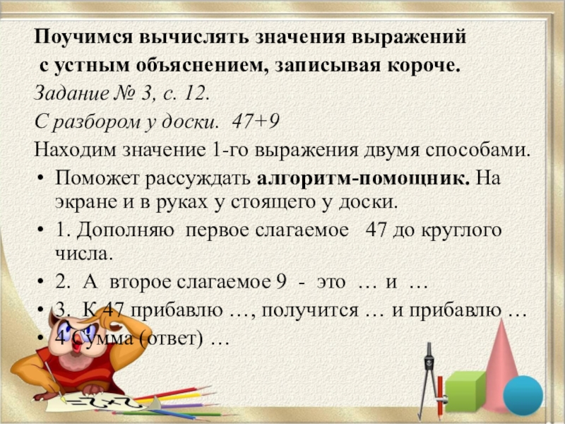 Поможет рассуждать алгоритм-помощник. На экране и в руках у стоящего у доски.
