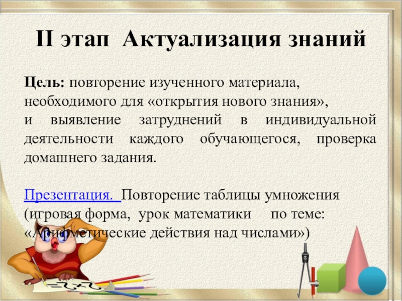 Презентация. Повторение таблицы умножения (игровая форма, урок математики по теме: «Арифметические действия над числами»)