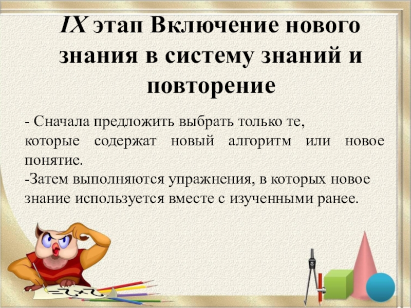 Слайд 25IХ этап Включение нового знания в систему знаний и повторение