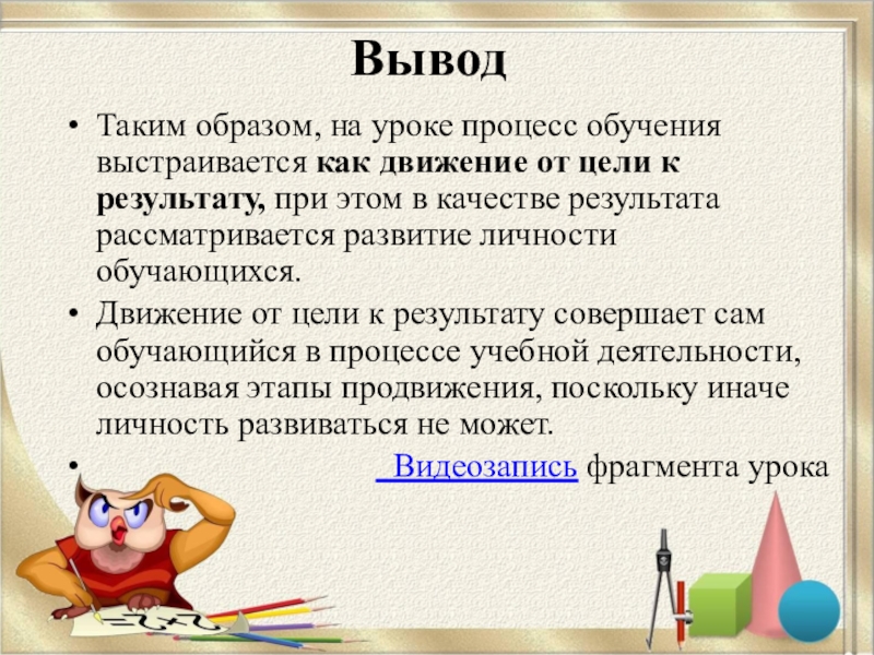 Слайд 31Таким образом, на уроке процесс обучения выстраивается как движение от цели