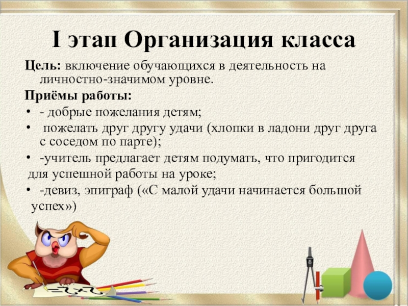 Цель: включение обучающихся в деятельность на личностно-значимом уровне.