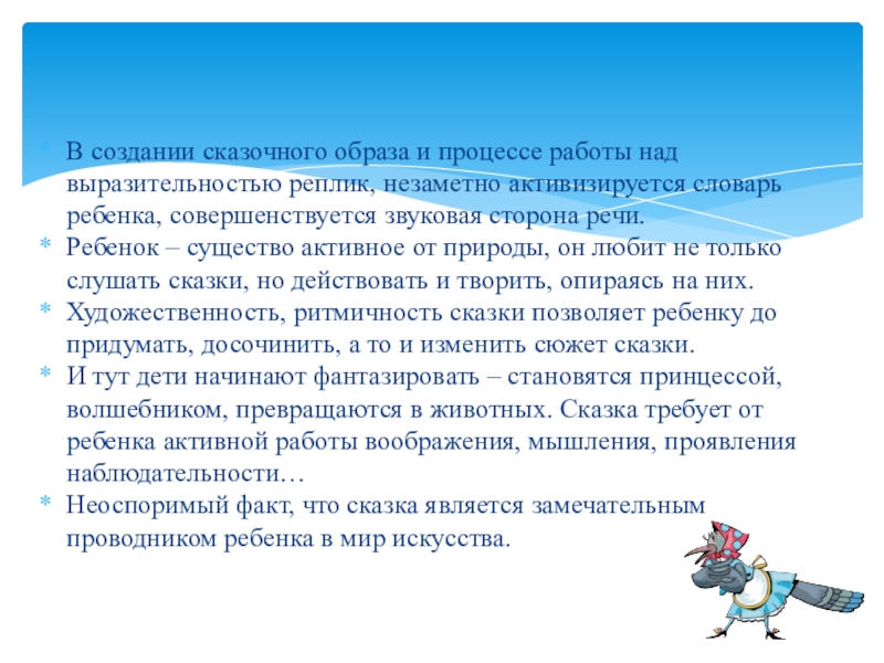 Слайд 5В создании сказочного образа и процессе работы над выразительностью реплик, незаметно