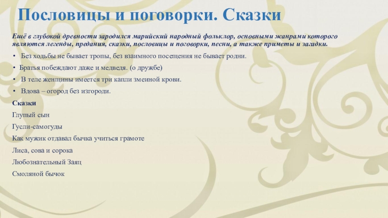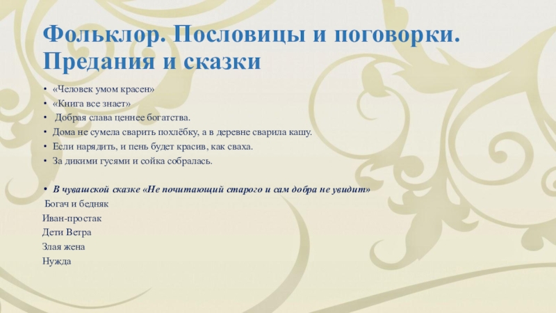Слайд 24Фольклор. Пословицы и поговорки. Предания и сказки