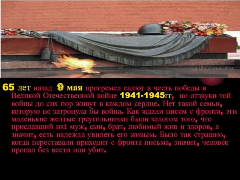 Слайд 365 лет назад 9 мая прогремел салют в честь победы в