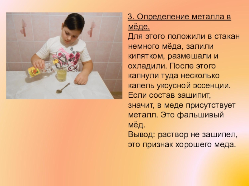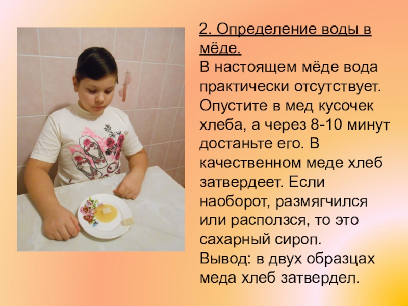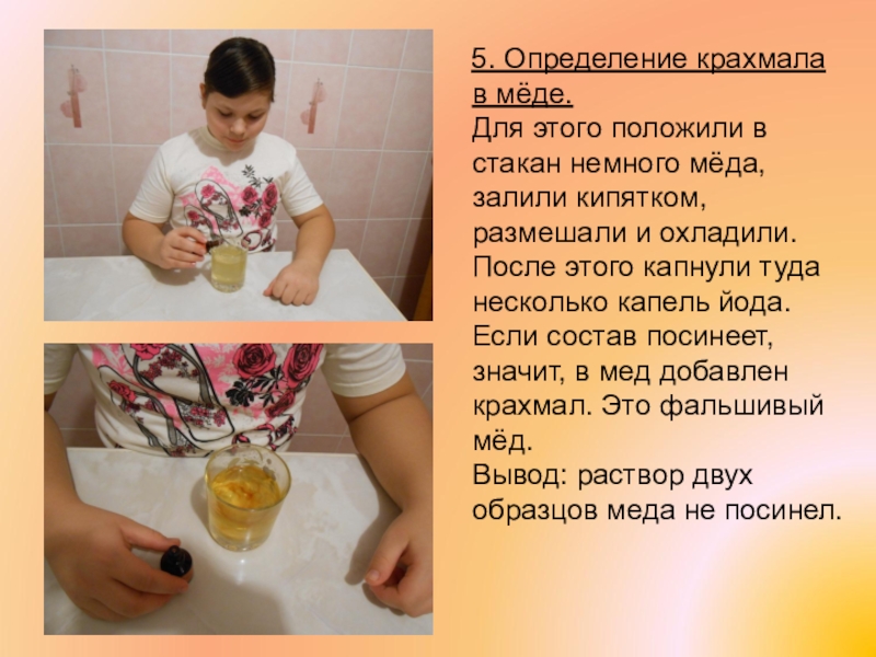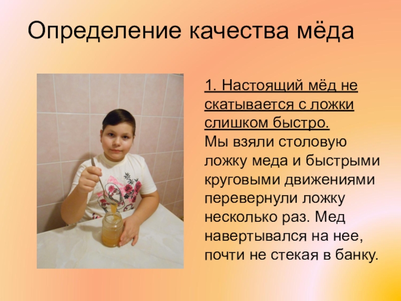 Мы доказали, что натуральный мёд можно определить опытным путем.