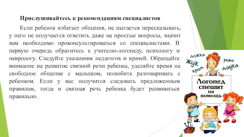 Слайд 12Прислушивайтесь к рекомендациям специалистов