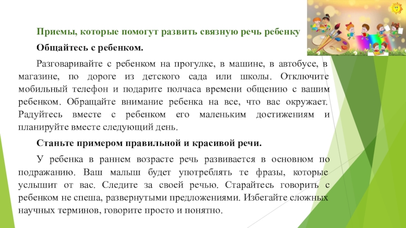 Слайд 9Приемы, которые помогут развить связную речь ребенку