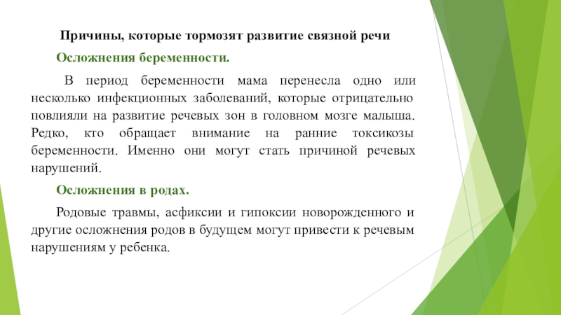 Слайд 6 Причины, которые тормозят развитие связной речи