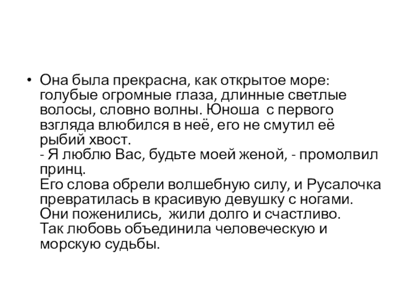 После поцелуя Русалочки принц очнулся и увидел свою спасительницу.