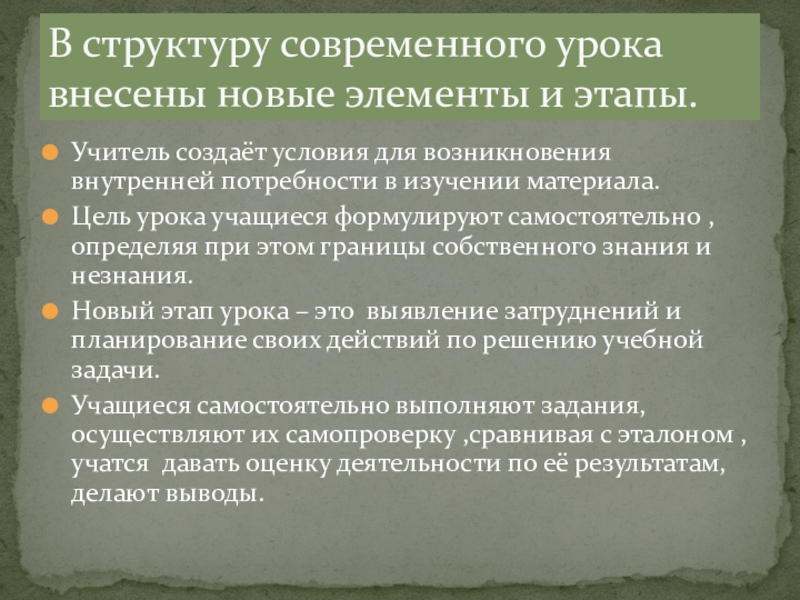 В структуру современного урока внесены новые элементы и этапы.