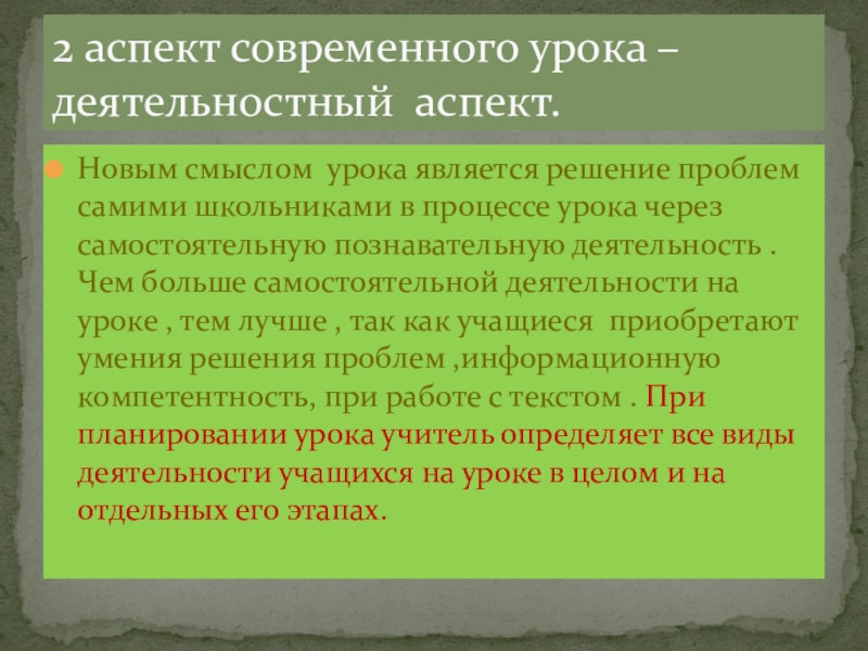 2 аспект современного урока – деятельностный аспект.
