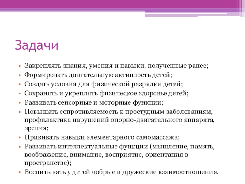 Повышать сопротивляемость к простудным заболеваниям, профилактика нарушений опорно-двигательного аппарата, зрения;