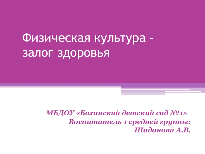 Слайд 1Физическая культура –залог здоровья