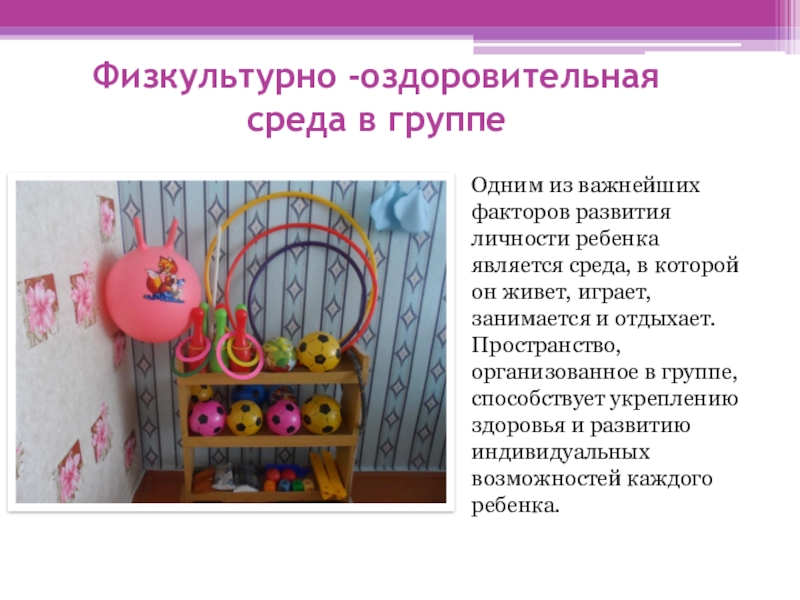 Слайд 6Физкультурно -оздоровительная среда в группе