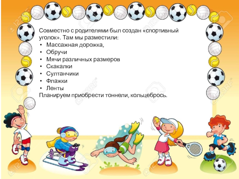 Совместно с родителями был создан «спортивный уголок». Там мы разместили: