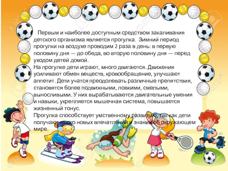 Слайд 15 Первым и наиболее доступным средством закаливания детского организма является