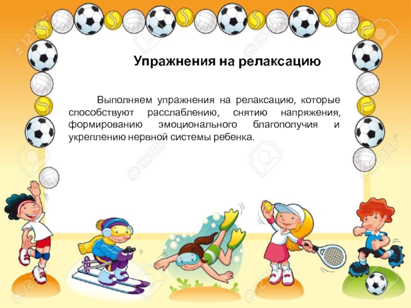 Выполняем упражнения на релаксацию, которые способствуют расслаблению, снятию напряжения, формированию эмоционального благополучия и укреплению нервной системы ребенка.
