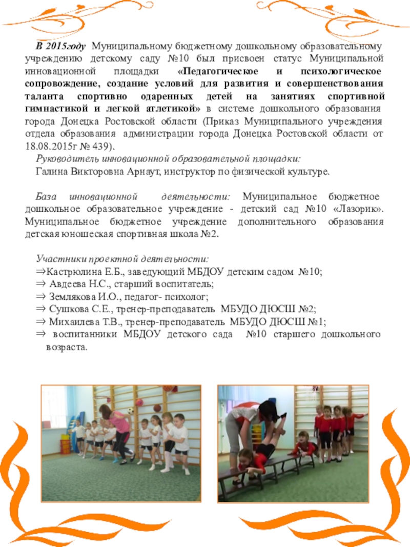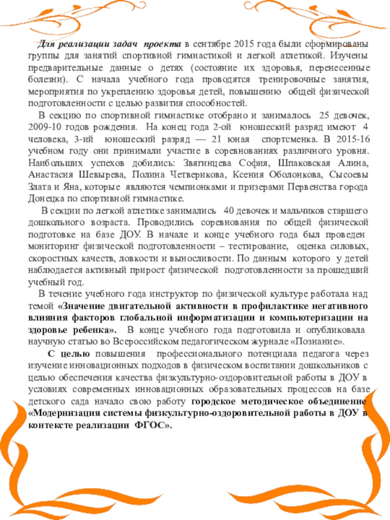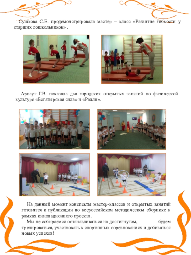 На данный момент конспекты мастер-классов и открытых занятий готовятся к публикации во всероссийском методическом сборнике в рамках инновационного проекта.
