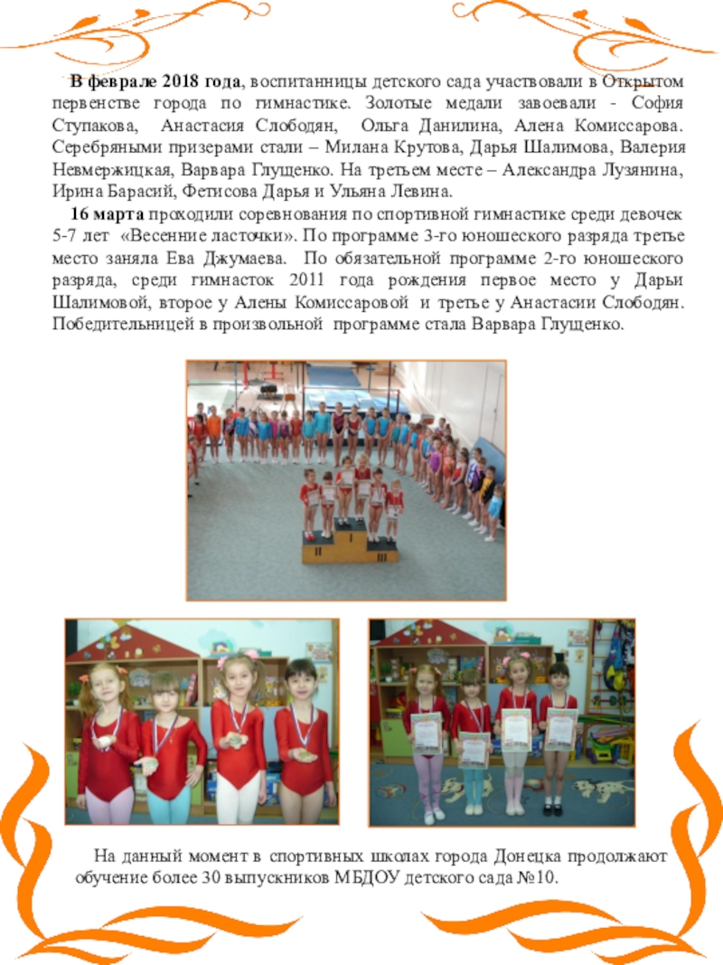 На данный момент в спортивных школах города Донецка продолжают обучение более 30 выпускников МБДОУ детского сада №10.