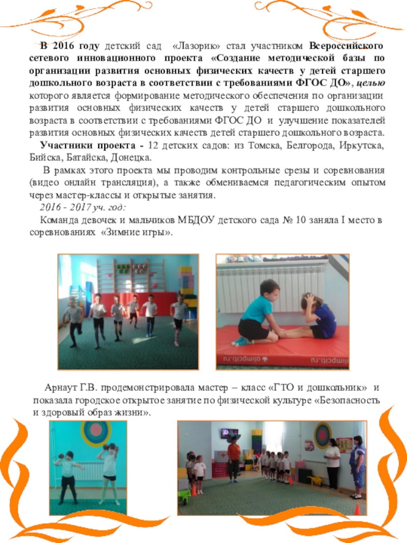 Арнаут Г.В. продемонстрировала мастер – класс «ГТО и дошкольник» и показала городское открытое занятие по физической культуре «Безопасность и здоровый образ жизни».