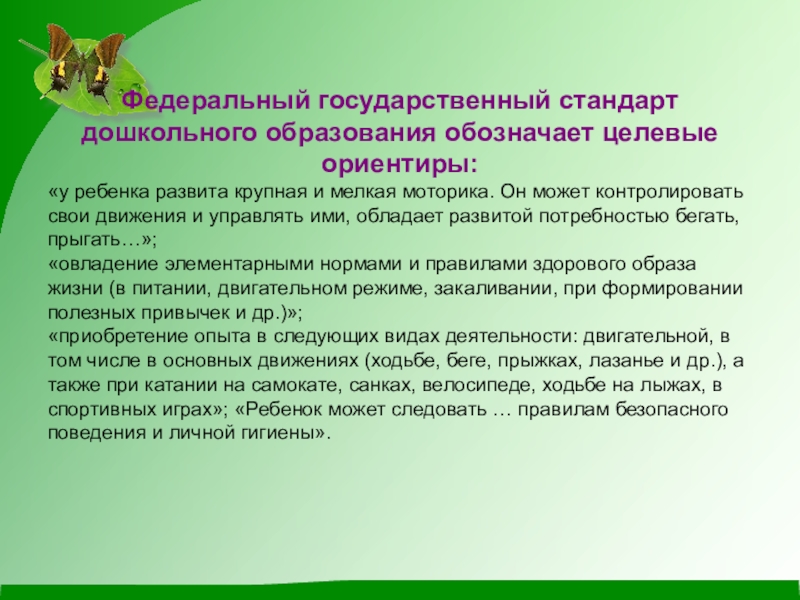 Федеральный государственный стандарт дошкольного образования обозначает целевые ориентиры: