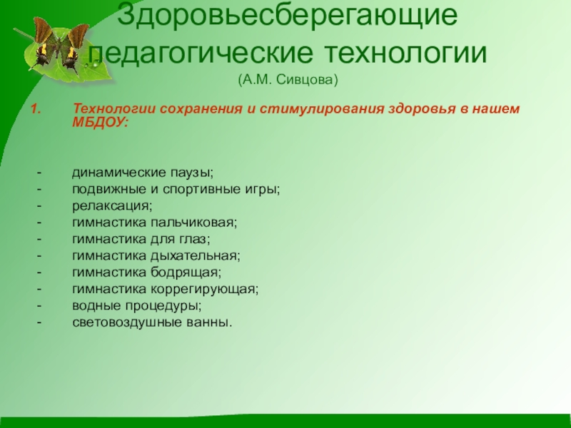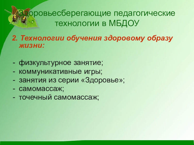 Слайд 7Здоровьесберегающие педагогические технологии в МБДОУ