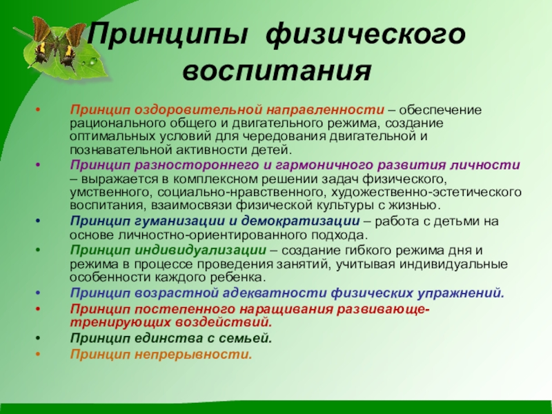 Принцип оздоровительной направленности – обеспечение рационального общего и