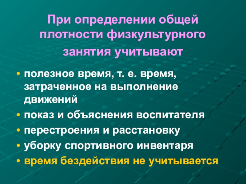 Слайд 28При определении общей плотности физкультурного занятия учитывают