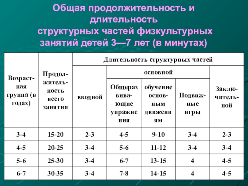 Слайд 20Длительность занятия для детей дошкольного возраста