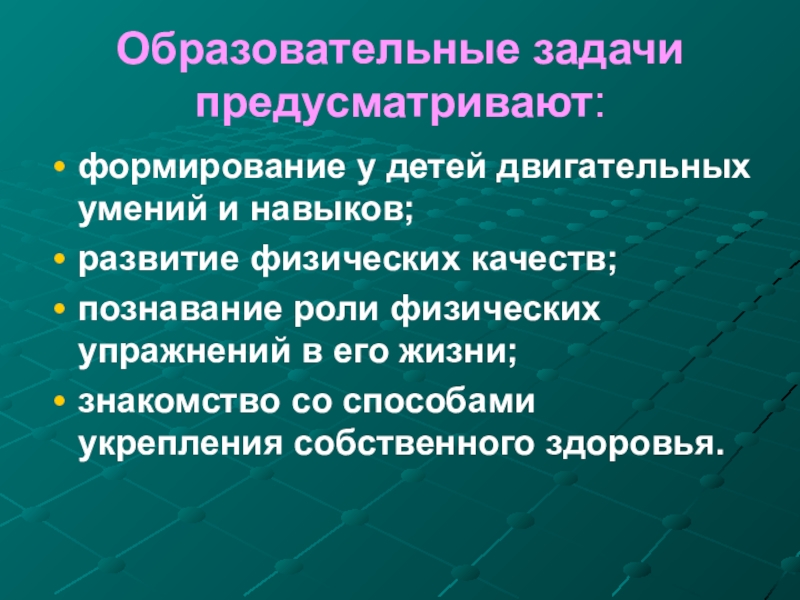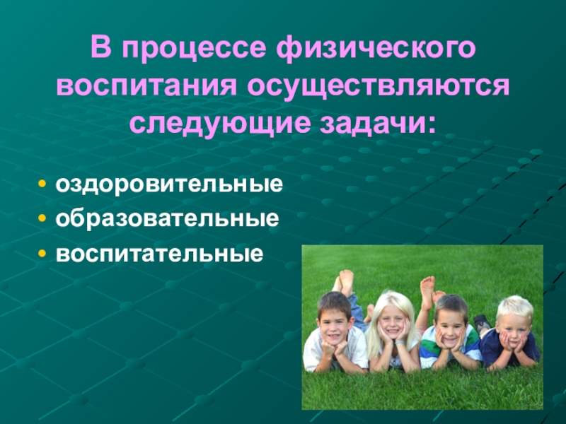 Слайд 6В процессе физического воспитания осуществляются следующие задачи: