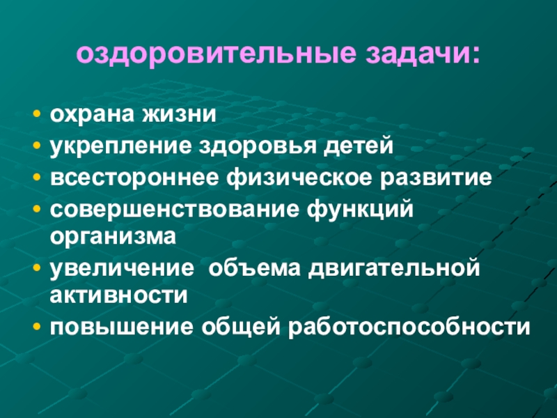 Слайд 9Частные оздоровительные задачи для детей раннего и дошкольного возраста: