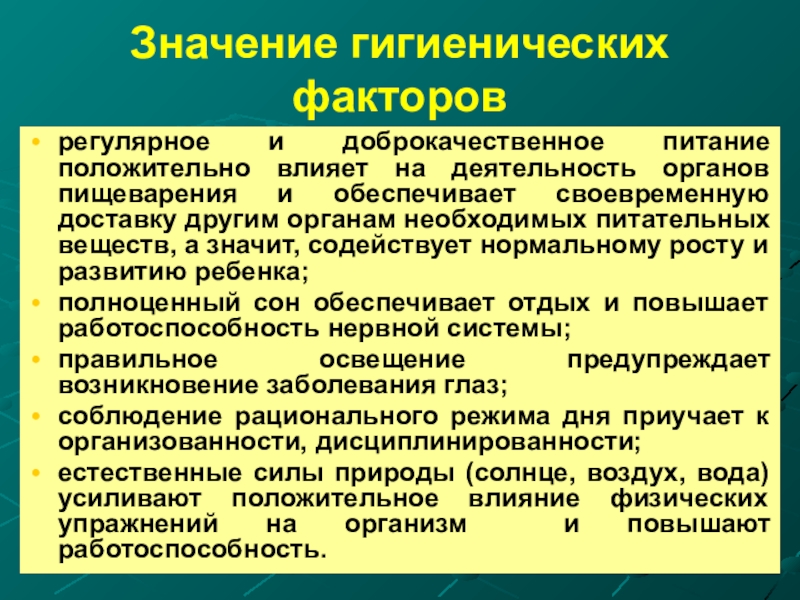 Режим дня, правила личной гигиены, закаливание естественными факторами природы