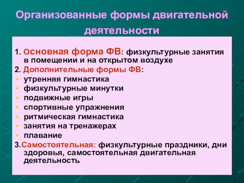 3.Самостоятельная: физкультурные праздники, дни здоровья, самостоятельная двигательная деятельность