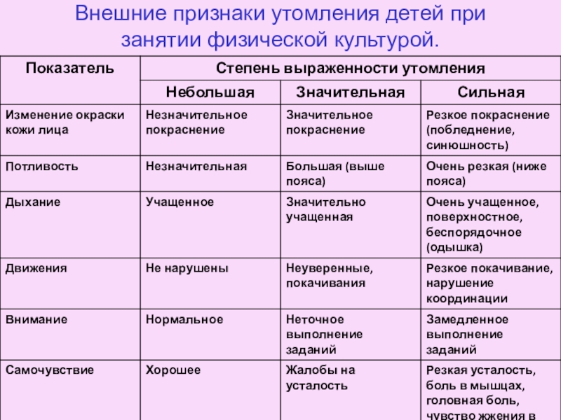 Слайд 40Внешние признаки утомления детей при занятии физической культурой.